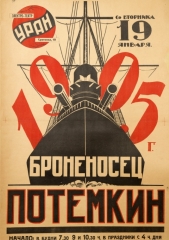 В одном из эпизодов восставшие поднимали на броненосце красный флаг. Однако кино в те годы было чёрно-белым, и красный цвет на экране выглядел бы чёрным. По этой причине во время съёмок использовался флаг белого цвета. Позже, специально для премьеры все 108 кадров с флагом были вручную окрашены в красный цвет. Первый показ фильма состоялся 21 декабря 1925 года в Большом театре, где проходило торжественное заседание, посвящённое юбилею. Появление красного флага на чёрно-белом экране произвело на зрителей колоссальное впечатление. Также эффектной сценой стал финал, где броненосец двигался прямо на зрителя, словно выплывая с экрана в зал. Премьера кинокартины прошла чуть позже - 18 января 1926 года в Москве, в 1-м Госкинотеатре. Как известно, изначально фильм снимался немым. Позже, в 1930 году «Броненосец „Потёмкин“» был озвучен. В 1950 году немой фильм был восстановлен, а в 1976-м переиздан «Мосфильмом» на новой качественной киноплёнке. Также стоит отметить, что в разные годы фильм подвергался советской цензуре. Из него убирались некоторые кадры и титры. Например, слова Троцкого заменялись словами Ленина. Первоначальная авторская версия была восстановлена лишь в 2005 году при участии Фонда «Германская Кинематека», Госфильмофонда и Российского государственного архива литературы и искусства. Мировое признаниеВ 1926 году фильм «Броненосец „Потёмкин“» был продан за рубеж, где подвергся цензурному перемонтажу – сцену расстрела матросов перенесли из начала кантины в конец, что несколько искажало замысел авторов. Те не менее, кинокартина вызвала восторг у зрителей и специалистов во всём мире. В 1926 году на Международной выставке декоративных искусств в Париже режиссёру фильма Сергею Эйзенштейну была вручена Золотая медаль, а Американская Академия киноискусства признала «Броненосец „Потёмкин“» Лучшим фильмом года. В настоящее время кинокартина Эйзенштейна является мировым достоянием. «Броненосец „Потёмкин“» неоднократно назывался авторитетными международными изданиями в числе десяти лучших фильмов всех времён и народов, а порой и вовсе занимал среди них первое место. Фильм, ставший в своё время новаторским, оказал огромное влияние на развитие отечественного и мирового кинематографа. Он и спустя многие десятилетия не утратил своей изюминки, оставась настоячим учебным пособием по созданию качественного кино. Музыка в фильме