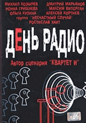Сейчас, к счастью, этот спектакль могут посмотреть практически все желающие, потому что он выпущен на DVD. Правда, меня слегка удивил тот факт, что ЗАО "Фирма ВДВ", разрабатывающая обложку, ухитрилась на ней здоровенными буквами написать фамилии совершенно другого состава актеров (только Козырев, Гришаева и Кортнев указаны правильно), в результате чего Полицеймако (его диджей Макс, на мой взгляд, просто лучшая роль в спектакле), Барац, Ларин (пьяный электрик и по совместительству профессор - это что-то невероятное), Хаит, Касаткина и Демидов в спектакле на DVD как бы и не участвуют. Ну и кроме того, спектакль на DVD-версии (точнее, на телевизионной версии, которую записали на DVD) заметно порезан - оттуда убрано примерно полчаса действия и песен. Тем не менее, если у вас нет возможности посмотреть "День радио" на сцене, DVD (или VHS) - отличная возможность все-таки приобщиться к этому очень веселому и остроумному действу. Автор - Алекс Экслер